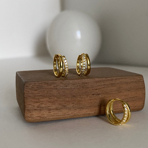 Argollas doble con una linea de perlitas color blanco.